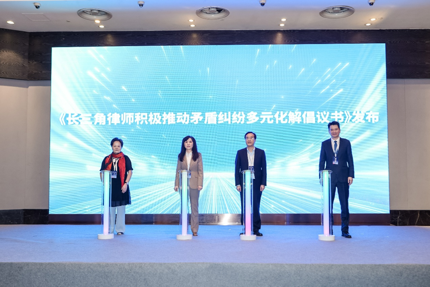 本次活动自筹备以来,各地律协与调解机构纷纷响应号召,参与到长三角律师调解协同发展的工作中。会上,四地律协与上海东方国际商事调解院、上海经贸商事调解中心、杭州律谐调解中心等10家长三角调解机构代表,共同签署了《长三角律师调解战略合作备忘录》。 随后,会议发布了《长三角律师积极推动矛盾纠纷多元化解倡议书》,进一步凝聚了行业共识。 本次会议前,四地律协面向广大会员群体公开征集公共法律服务及调解相关的论文成果,经过层层筛选最终汇编成论文集,涵盖商事调解创新、公益法律服务模式等前沿话题,并在现场发布。