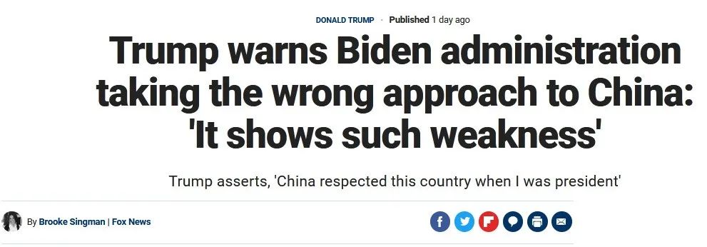 政治算计!特朗普攻击拜登政府“应对中国方式错误”,宣称显得美国“软弱” 特朗普又跳出来了。 曾经是特朗普最喜欢的媒体的美国福克斯新闻网,9日发布了对特朗普的“独家采访”,给了特朗普又一个批评拜登的机会。特朗普借机宣称,拜登政府采用错误的方式应对中国,显得美国“如此软弱”。 ![]() ![]() 在这篇文章刊登前不久 ,美国总统国家安全事务助理沙利文7日在CNN的访谈节目中谈及中国,称美中关系“不是新冷战”,美国不再寻求改变中国体制,而是想与中国“共存”。 但福克斯对特朗普的专访报道并未以此为背景,而是强调白宫在此前的表态中称,美国希望以负责任的方式管控与中国的竞争。白宫官员还称美国欢迎与中国“激烈竞争”,且不希望这种竞争会演变为冲突。 “我不认为对中国做这种表达是一种好的方式”,特朗普对福克斯新闻说称,“这显得如此软弱,我们已经表现出这样的软弱”。 他还接着凡尔赛称,“我当总统的时候,中国尊重(我们)这个国家。”“(现在)中国不再尊重我们的国家,这是非常可悲的。” 担任总统期间,特朗普的风格已经广为人知——特别喜欢自夸,即使面临各方批评时都是如此。 自从今年1月下台后,特朗普总是时不时地站出来批评拜登政府。他对大选败给拜登显得很不服气,甚至煽动支持者冲击国会试图改变大选结果,这使他被多方批评。许多人称特朗普有意参加下次总统选举,他多次宣扬对华强硬、批评拜登政府对华政策也被解读为出于选举考虑。 同样在11月9日,美中关系全国委员会在纽约举行2021年度晚宴。中国驻美国大使秦刚在致辞中表示,中方对美政策保持高度的延续性和稳定性,始终从两国人民和世界人民根本利益出发,从战略高度和长远角度看待和把握中美关系。有人说,中美关系不能回到从前了,难道就因为如此,我们就可以不珍惜,甚至任意破坏它吗?我们绝不认同。我们期待同美国政府和各界有识之士一道,按照中美元首通话的精神,加强对话、管控分歧、聚焦合作,共同为推动中美关系重回正轨而不懈努力。 |