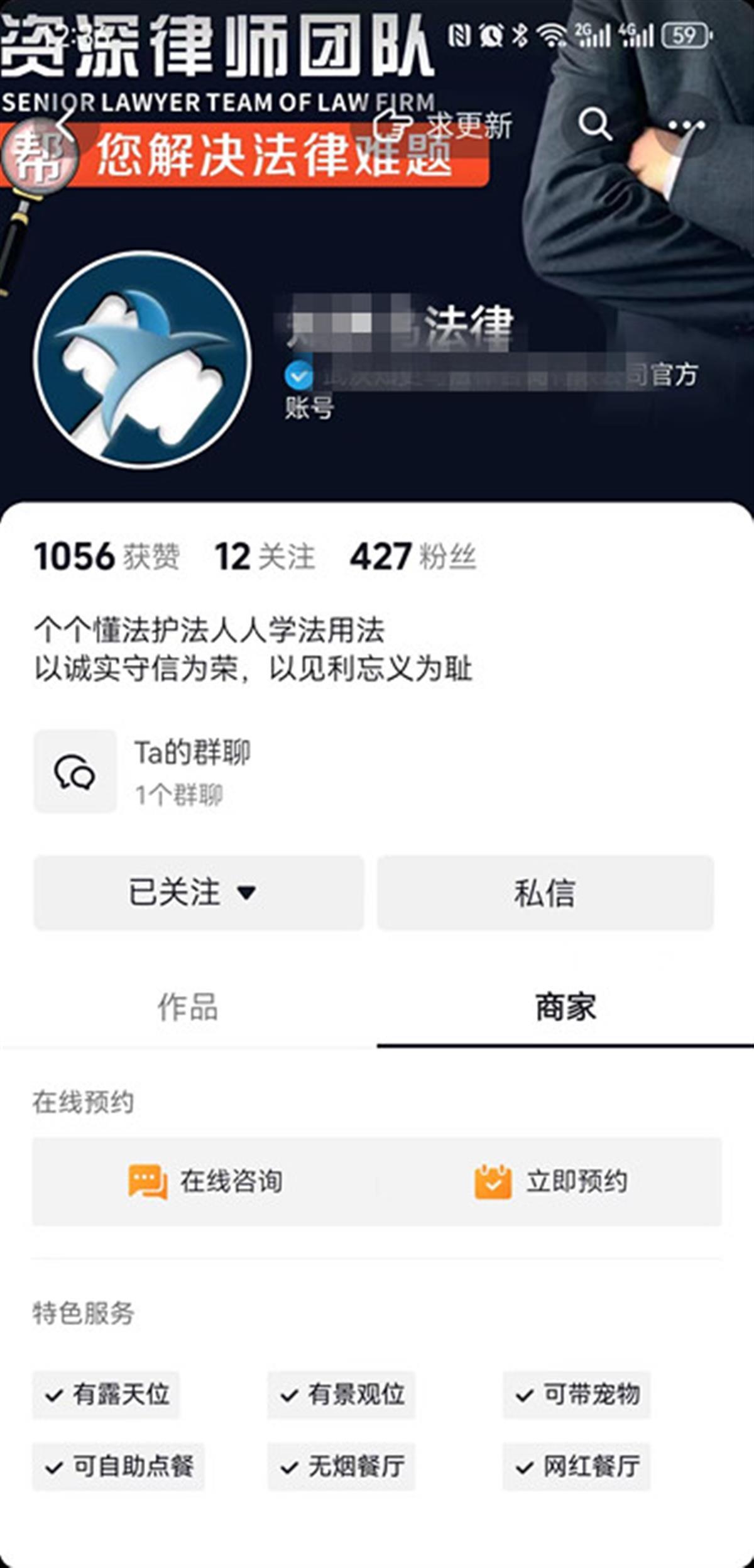 近日,西安市民张先生向极目新闻记者投诉称,他花费1500元委托武汉某法律咨询有限公司,希望通过法律手段为自己讨要欠款,然而,一个多月过去了,对方却没有任何进展。 据悉,有不少公司打着法律咨询的幌子、法务公司的幌子,承揽诉讼案件,并称有专业律师团队合作。武汉市律师协会提醒:注意区分律师事务所、基层法律服务所和法律咨询公司。 法律咨询公司收费后却迟迟无进展 西安市民张先生有一笔1万元的欠款,长达7年仍未要回。3月19日,他在某短视频平台上看到武汉一家法律咨询公司的广告,声称有专业的法务团队能帮忙收集证据、立案,由法院进行调解,便萌生了希望通过该法律咨询公司帮忙讨要欠款的想法。 他通过该广告链接留下了自己的联系方式。不久,就有一位自称是法律顾问的人联系了他,并互加了微信。在大致了解了张先生的相关信息之后,对方发来了微信视频请求,通过视频带他参观了公司的环境和营业执照、荣誉证书等相关证件。沟通中,对方承诺,该公司有专业的法务团队,大概率可以帮张先生要回债务。 就这样,张先生当天就向对方支付了1500元的法律咨询服务费,并签订了《债务专项线上处理法律咨询服务合同》电子合同。合同上写着,“乙方是一家依法设立并合法存续的有限公司,拥有一支专业化、全面化、信息化、现代化的服务团队,有能力为甲方的需求提供专业服务。”同时注明:“本合同项下的法律服务内容不包含律师代为出庭,如需律师代为出庭需另额外支付律师费用及差旅费。” 随后,张先生被拉入了一个微信群。群聊中,一位工作人员告诉他,该群提供法律服务的步骤分为四步,即研究案情、调取相应信息、草拟诉状、代当事人线上立案等。在对方的要求下,张先生配合提供了调查取证授权委托书。对方称,将根据这些资料,按流程安排背调,请张先生耐心等待。 “一开始,这些流程看上去都十分正规,但一个多月过去了,对方却迟迟没有进展。”张先生向极目新闻记者出示了相关微信记录。记录显示,张先生曾多次询问过案件进展,但对方均以“背调还需要时间”为由,让张先生继续等待。案件迟迟不能推进,张先生开始对该公司产生怀疑,要求退款。但对方始终以“帮您加急催促一下”回复,避而不提退款事宜。 张先生这才想起,之前对方工作人员只出示了公司的营业执照,并没有相关从业人员的律师资格证等。4月25日,极目新闻记者从武汉市武昌区中南路市场监管所获悉,该所已向该公司下达责令改正通知书,该公司也承诺近期向张先生退款。 开单话术:先确定个人经济实力 4月25日,极目新闻记者在短视频平台上找到了这家公司的账号。虽然该账号并无视频内容,但主页的图片标注有“资深律师团队帮您解决法律难题”的字样。账号的个人描述区写着:“个个懂法护法人人学法用法/以诚实守信为荣,以见利忘义为耻。”
