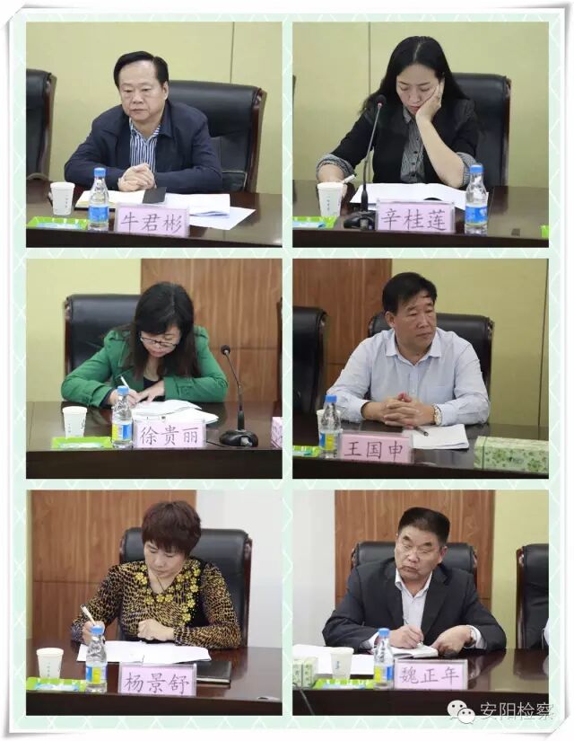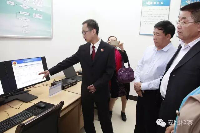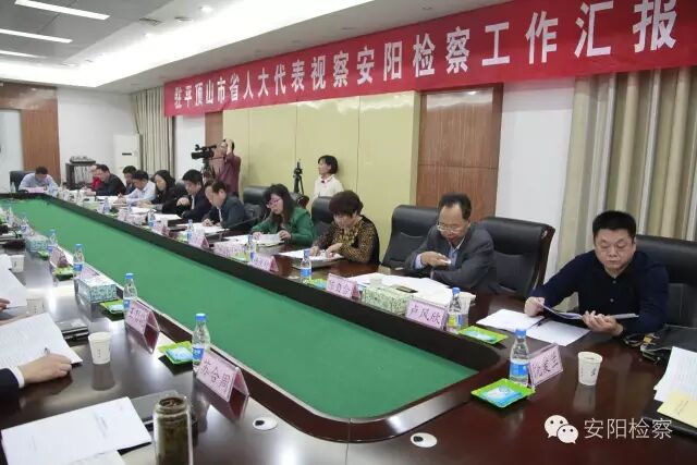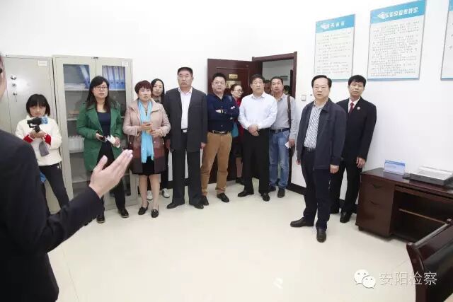 近年来,省检察院高度重视加强与人大代表联络、主动接受人大监督工作,在往年安排有关领导走访人大代表,广泛征求代表意见和建议的基础上,今年,省院又统一安排部署,开展邀请省人大代表交叉视察检察工作的活动。10月17日,来自驻平顶山市部分省人大代表牛君彬等一行,在河南省检察院副厅级检察员易广辉,省检察院监察处副处长陈自合,省检察院监察处审理室主任徐春雷,平顶山市人大选工委副主任朱姝娅,平顶山市检察院党组成员、副检察长卢风欣等相关领导的陪同下,对安阳市检察机关开展“异地交叉视察”检察工作的活动。安阳市人大常委会副主任聂孟磊,安阳市检察院党组书记、检察长常凤琳,安阳市委政法委副书记张汉房,安阳市人大常委会选工委主任丁建宇和市院班子成员等领导陪同视察。