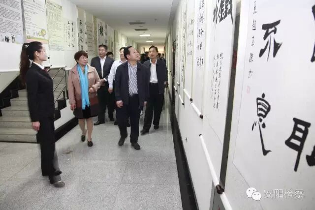 随后,省人大代表参观了市检察院的文化长廊——书法、绘画、文学和摄影作品,这是安阳检察文联会员把对党的忠诚和大美安阳的巨变挥洒入一张张宣纸,把对检察事业的热爱凝固进一幅幅图片,把规范执法的成效和亮点成就一段段美文,从不同角度展示了,安阳检察机关的良好形象。