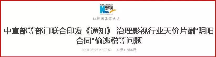 大快人心!小崔终于拿到尚方宝剑!中央重磅回应,影视圈大地震!重磅来了 中央宣传部 文化和旅游部 国家税务总局 国家广播电视总局 国家电影局等 联合印发《通知》要求 加强对影视行业 天价片酬 阴阳合同 偷逃税等问题的治理 控制不合理片酬 推进依法纳税 促进影视业健康发展 —————————————— 《通知》措词十分严厉: 天价片酬 阴阳合同 偷逃税等问题 不仅推高影视节目制作成本 影响影视创作整体品质 破坏影视行业健康生态 而且滋长拜金主义倾向 误导青少年盲目追星 扭曲社会价值观念 必须采取有效措施切实加以整治 —————————————— 《通知》对片酬划杠杠: 全部演员、嘉宾的总片酬 不得超过制作总成本的40% 主要演员片酬 不得超过总片酬的70% —————————————— 《通知》还要求: 坚决纠正 高价邀请明星、竞逐明星不良现象 政府资金、免税的公益基金等 不得参投娱乐节目 不得助长过高片酬 —————————————— 《通知》还作出具体部署: 坚持把社会效益放在首位 坚决反对 唯票房、唯收视率、唯点击率 强化对娱乐新闻总量控制 —————————————— 一则《通知》 一把尚方宝剑 小崔举报终于善终 为了这一天 亿万群众急迫之情 终于释怀 中央的这则《通知》 基本上回应了 一段时期以来的舆情关切 首当其冲的 也是大家最关心的 阴阳合同偷税漏税问题 成为这次整治的重点 上头终于发话 娱乐圈的大腕们 都该好好反省有没有原罪 最好都把尾巴夹紧了 不要再作无畏的争辩 反观现实 几个娱乐大亨天天秀八卦 就能毫不费力占尽粉丝红利 以新浪微博为例 范冰冰粉丝6000万 李冰冰粉丝4000万 相比之下 崔永元粉丝1500万 再以热搜为例 娱乐大亨 好事来了,长期霸占热搜榜 坏事来了,消失得无影无踪 这是资本的暗黑力量 让这群人想上头条就上头条 想逃离舆情审判就能轻易逃离 他们不是大亨 他们是娱乐界的寡头 小崔的出现 让一场大变革加速到来 也让我们看到了 中央惩治腐败和变革社会不公的 坚强决心 这一次 正义来得及时 来得大快人心 一场回应社会关切的大洗礼 即将呈现 期待着 洗尽娱乐圈污垢 重现 朗朗与昭昭 你体内的情绪垃圾已超过90%,怎么清除?深度好文:这是一个出轨横行的畸形时代......最怕你一生碌碌无为,还安慰自己平凡才可贵他是落魄富二代,凭借关系进入仕途,为了前程,官途之中,不...别让父母倒下时 你却只待在通讯录里 |